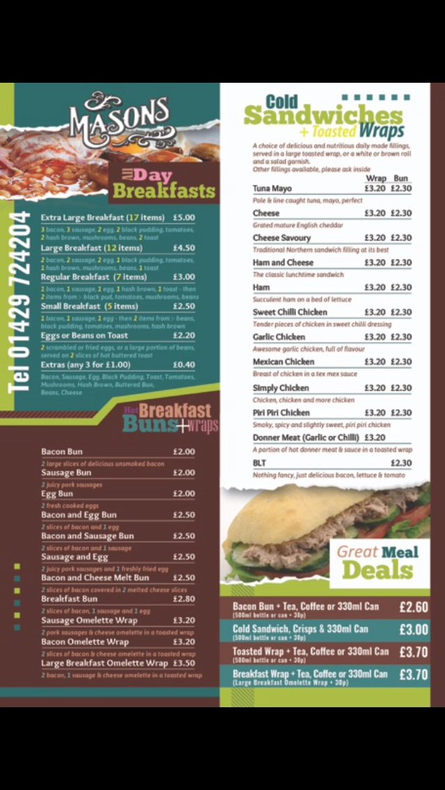 Located in Hartlepool, this cafe and breakfast restaurant offers a diverse menu featuring a range of deli-style dishes. The menu is structured into several key groups to cater to different dining preferences throughout the day.